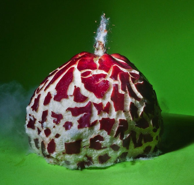 Фотограф Алан Зайлер Елочные демнстрирует разбитие елочных украшений, заполнив их различными наполнителями. Моменты, когда происходил взрыв игрушки, Алан фиксировал в режиме высокоскоростной съемки.