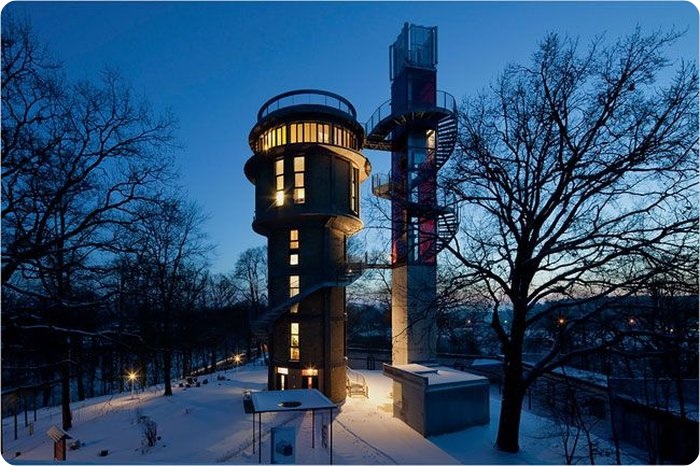 Британские супруги-дизайнеры хотели найти себе идеальный, но необычный дом. Они нашли заброшенную 21-метровую водонапорную башню из желтого кирпича в Восточной Германии в городке Йоахимшталь на краю природного заповедника.