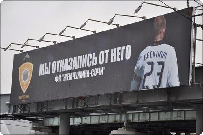 В феврале этого года в Москве была размещена реклама сочинского футбольного клуба «Жемчужина-Сочи» с изображением Дэвида Бэкхема (David Backham) и слоганом «Мы отказались от него». Совершенно непонятно, каких результатов от данной рекламной кампании ждал российский футбольный клуб из города Сочи. Москвичи и жители других городов, обсуждавшие бессмысленность подобного пиара в интернете, так и не поняли замысел и вообще цель этих биллбордов.