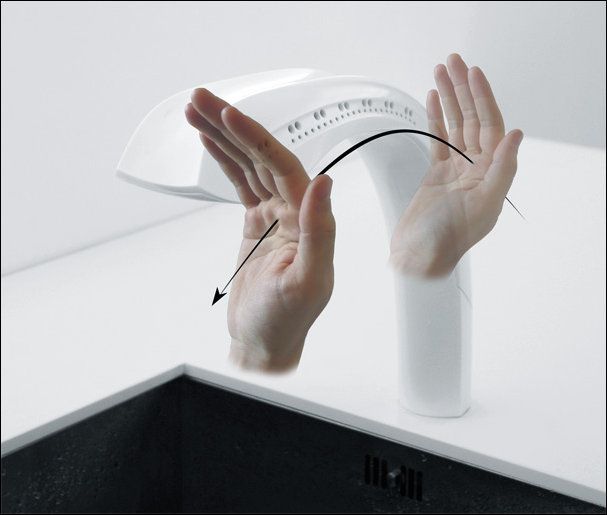 Бесконтактный смеситель для кухни. Дизайнер Джаспер Деккер придумал сенсорный смеситель, в котором вы будете жестами рук настраивать скорость потока и температуру воды.