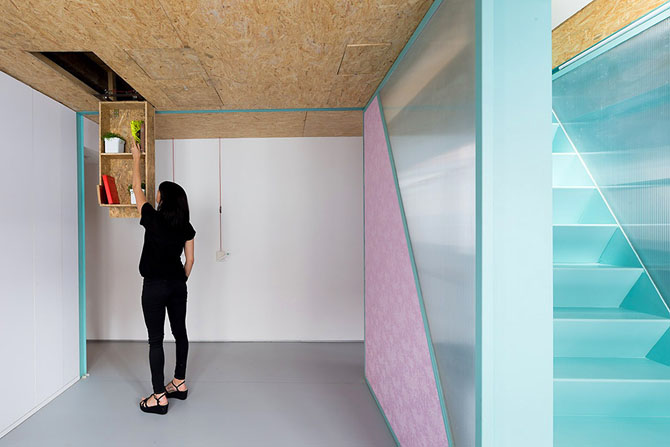 Вертикальные элементы также интегрированы в конструкцию и абсолютно не мешают, когда их не используют. Так, скамейки, столы или даже качели можно спустить со специальных ниш в потолке. Там же скрыты вентиляторы и зеркальный шар — как видите, этот многофункциональный дом заранее подготовлен как для спокойного отдыха, так и для шумной вечеринки.