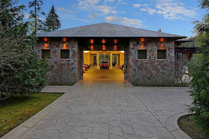 Несмотря на то, что в коттедже всего две спальные комнаты, только будучи 2 спальни, дом имеет площадь в 627 квадратных метров и располагает тренажерным залом, мастерской и домашним офисом. Что интересно, это то, что гараж занимает почти в два больше места, чем жилые помещения.