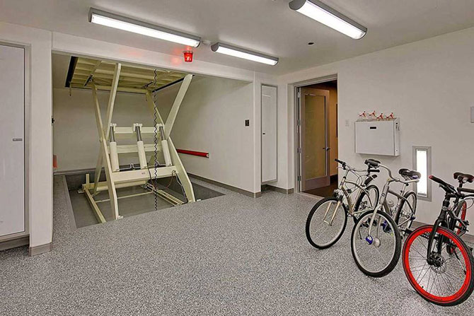 А также имеется специальный подъемник. Не подумайте, что для жильцов. Нет! Конечно же для автомобилей!