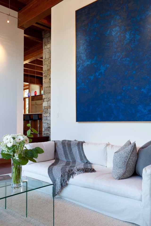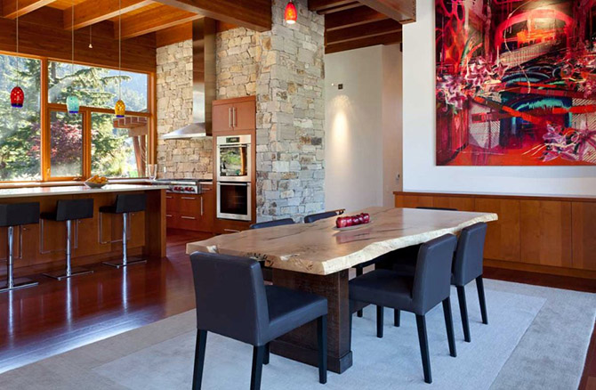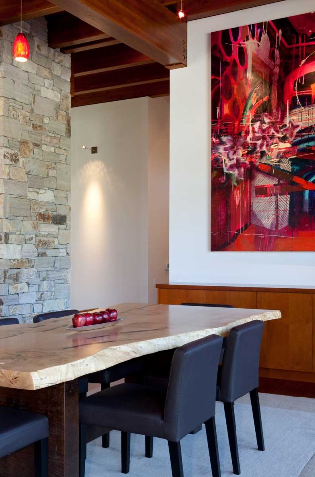 Большая абстракционистская картина дополняет дизайн столовой.