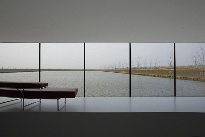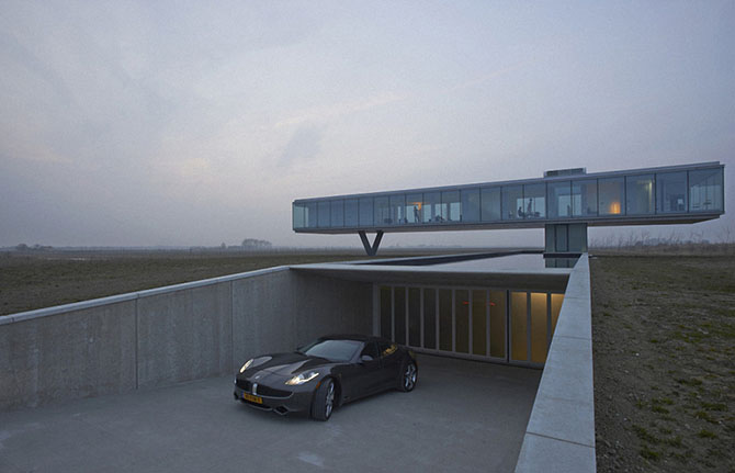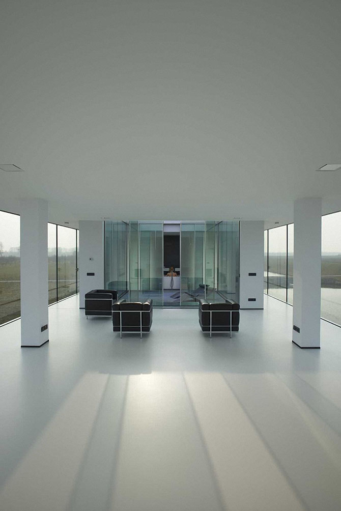 Несмотря на то, что дом выглядит почти прозрачным, его владельцам не нужно беспокоиться о посторонних или любопытных соседях. Дом находится в самом центре участка, и чтобы в него попасть, нужно ехать на машине не меньше 10-ти минут.