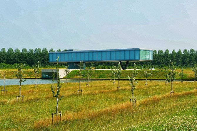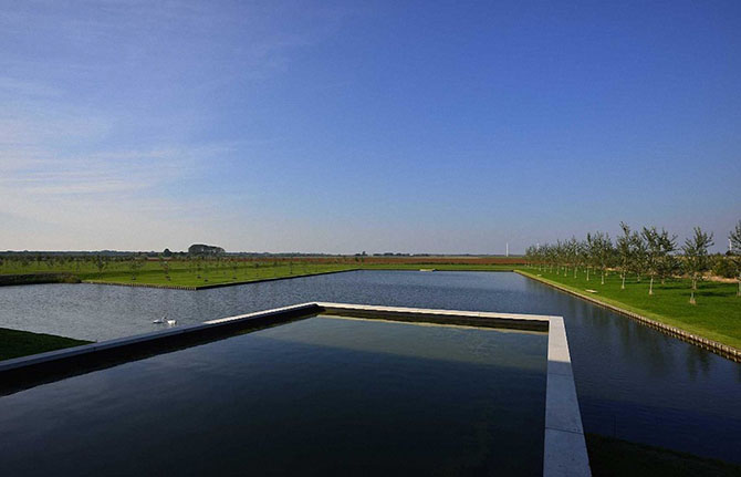 Идея автономности виллы была продиктована также тем, что деревня Kamperland, где она строилась, находится на острове, большая часть которого — это пахотные земли и ветряные «фермы». На острове живет лишь 2 тысячи человек.