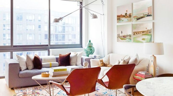 Не обязательно цепляться за наличие в ваших крохотных апартаментах громоздкого дивана. Иногда его может заменить уютный ковер и парочка кресел.
