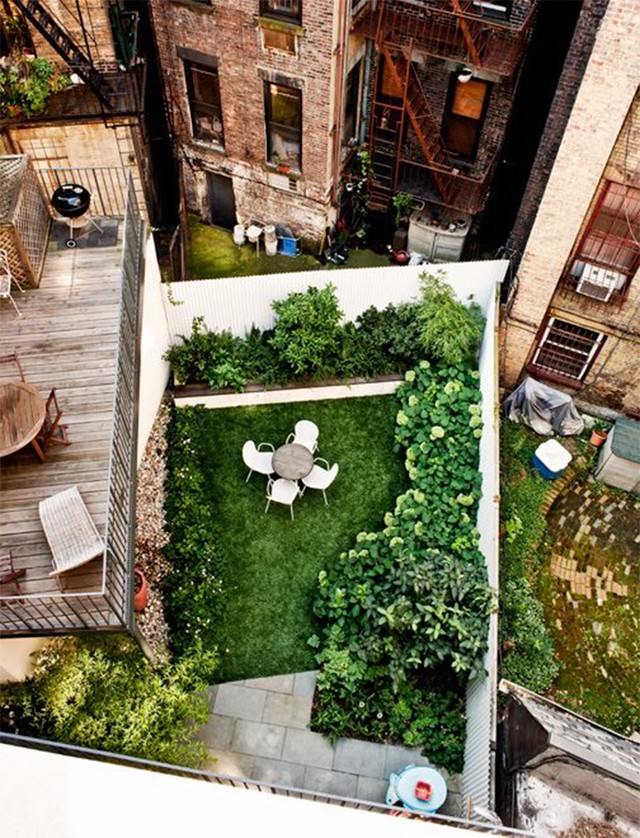 Этот прекрасный уголок на крыше имеет все необходимое для отдыха в окружении зелени, и только небоскребы вдалеке напоминают, что вы все же не за городом.