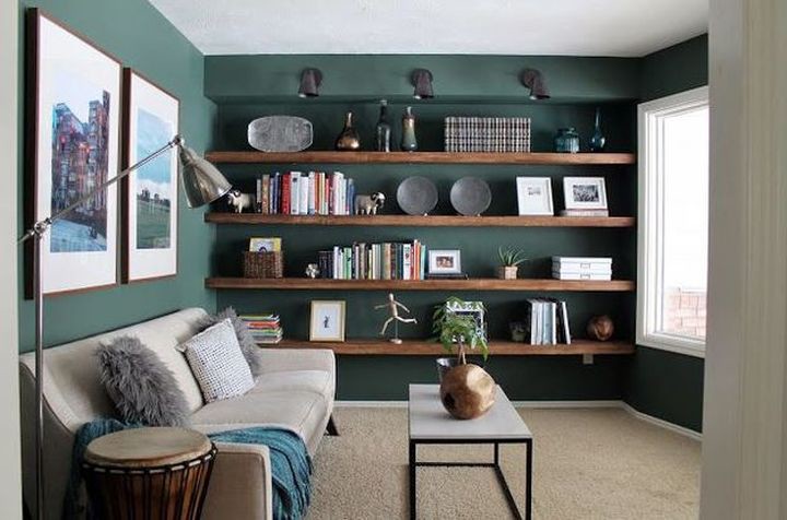 Горизонтальные полоски могут сделать стену визуально длиннее, чем она есть на самом деле. Можно раскрасить стену в полоски разных цветов и ширины или использовать полосатые обои. Менее радикальный способ, связанный с горизонталью, это размещение на узкой стене полки, которая не только раздвинет стены, но и послужит дополнительным местом для хранения.
