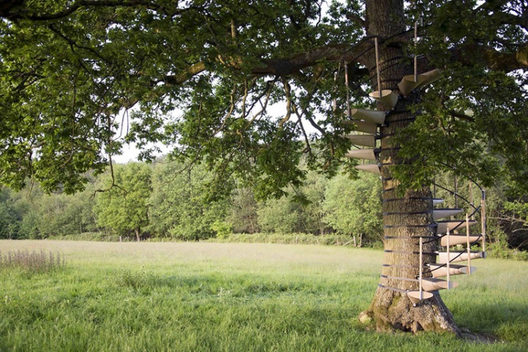 Все же кора дерева может пострадать, если стяжки оставить на долгое время. Поэтому дизайнеры все же считают, что такая лестница должна быть установлена лишь на ограниченное время. Время сборки 7-метровой лестницы двумя людьми — 3 часа, а разборки — 30 минут.