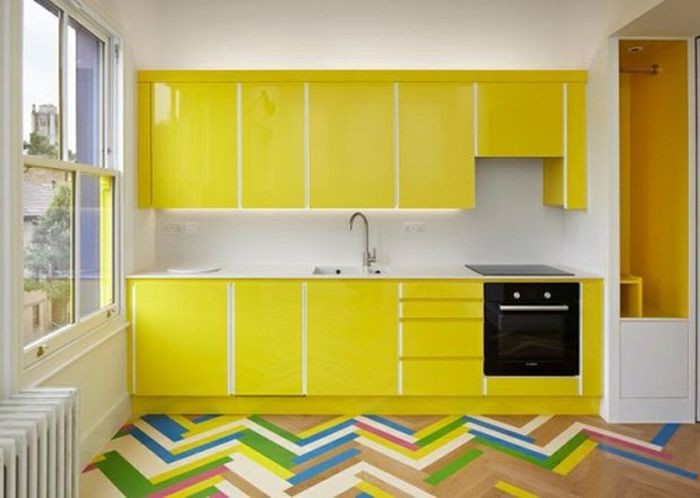 Покраска пола с использованием трафаретов или узорных схем — прекрасная идея для всех, кто хочет быстро и недорого сделать дома шикарный пол. Новый линолеум с ярким рисунком будет тоже отлично выглядеть. Виниловые плиты установить можно невероятно быстро, но вид они будут иметь представительный. С полом так же, как и с обоями, не обязательно делать по-новому весь пол — даже небольшой участок с другим покрытием изменит ситуацию.