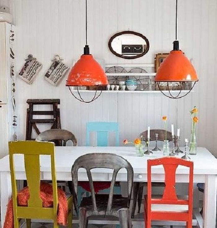 Стулья разных видов в одном помещении сделают его очень оригинальным.