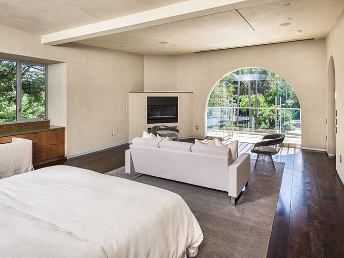 Стекла от пола до потолка, благодаря которым открывается потрясающий вид на сад, были также установлены в спальнях.
