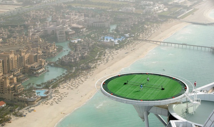 6. Одна из главных особенностей отеля – вертолётная площадка. Она легко превращается в покрытый травой теннисный корт на высоте 198 метров. Это самый высокорасположенный теннисный корт в мире.