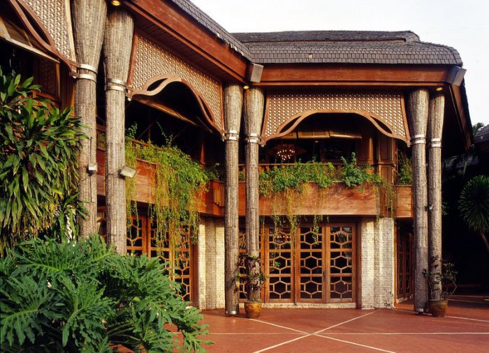 Ключевая особенность сооружения состоит в использовании кокосовой пальмы в качестве основного материала для строительства. Здание так и называется – Кокосовый дворец или Tahanang Pilipino. Крыша сделана из кокосовой черепицы, опоры взяты из самых прочных стволов кокосовой пальмы. Внутри дворца на полу лежит кокосовый паркет, поверх которого расположились ковры из кокосового волокна. В то же время, на стенах поклеены обои из кокосовой фиброзной оболочки. Светильники и люстры сделаны из кокосовых орехов, а обеденный стол покрыл десятками тысяч кусочков все тех же орехов кокоса. Дворец был построен к приезду Папы Римского в конце прошлого века. Сейчас туда можно попасть с экскурсией.