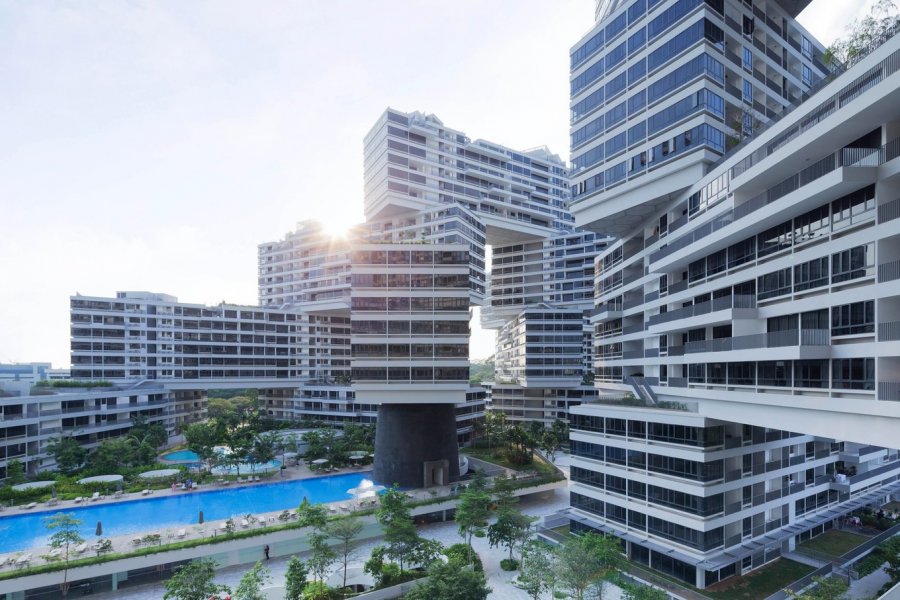 Проект жилого комплекса The Interlace в Сингапуре разработали бюро OMA совместно с Ole Scheeren. На территории в восемь гектаров расположили несколько зданий с 1040 квартирами различных размеров и обширными открытыми пространствами с ландшафтным дизайном. Новый проект отказывается от стандартного типа застройки в виде вертикальных башен, сменяя его сетью жилых и коммунальных помещений, интегрированных в природную среду.