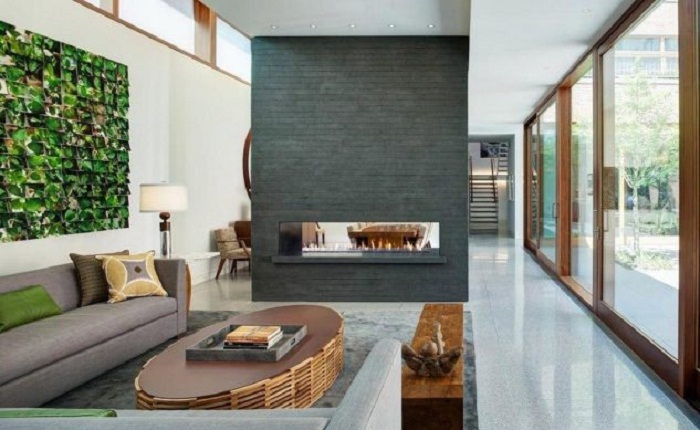 Большой камин для больших пространств. Очень крутое решение создать невероятный камин большого размера в таком же большом пространстве.