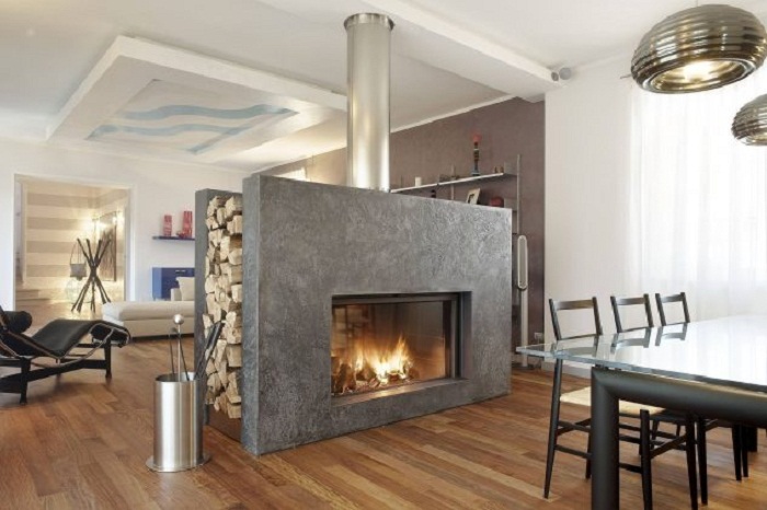Стильный интерьер с камином. Очень интересное решение для создания такой домашней атмосферы благодаря установке камина.