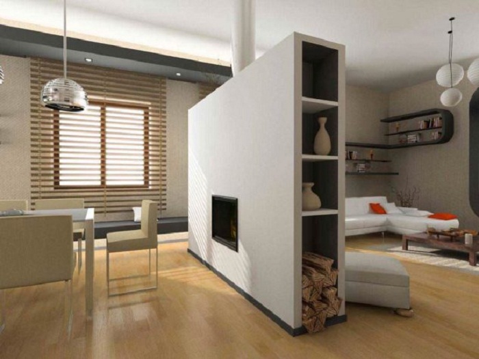 Всё в одной комнате. Хорошее решение преобразовать интерьер большой комнаты за счет камина.