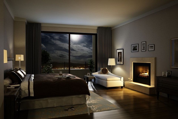 Домашний уют. Одно из самых лучших решений – создать домашнюю обстановку благодаря размещению камина в спальной.