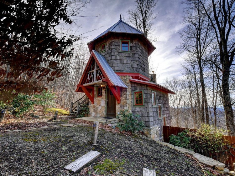 Этот маленький дом в Северной Каролине, США, похож на крошечный замок. Снаружи он очень милый и совершенно обаятельный. Маленький, сказочный, удивительно гармонично вписавшийся в пейзаж лесного массива на скалистом уклоне горы.