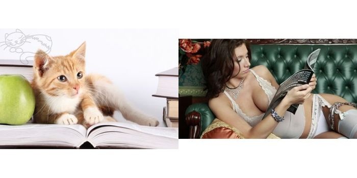 Так как мужской половине больше всего нравится смотреть на женскую грудь, а женщинам на котиков, пришлось совместить два направления и угодить всем.
