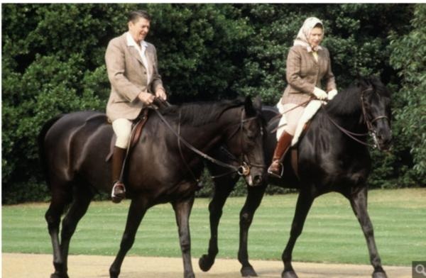 Коротконогие рыжие псы породы вельш корги стали четвероногим символом британской монархии. Они традиционно сопровождают королеву на прогулках, но еще большую страсть она питает к лошадям. Известно, что Елизавета не только ухаживала за лошадями и занималась выездкой, но и неоднократно приглашала на приватные аудиенции «заклинателя лошадей». На этом архивном фото Елизавета II совершает конную прогулку с бывшим президентом США Рональдом Рейганом.