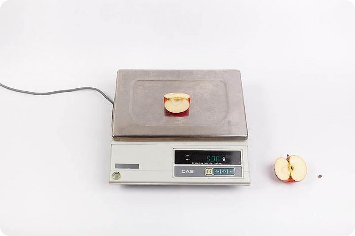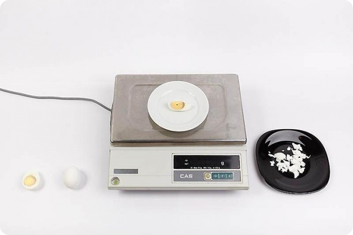 Норма потребления была разработана учеными из расчета на год. Авторы проекта вычислили вес продуктов на один день, зафиксировали его на электронных весах и сфотографировали.