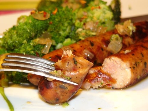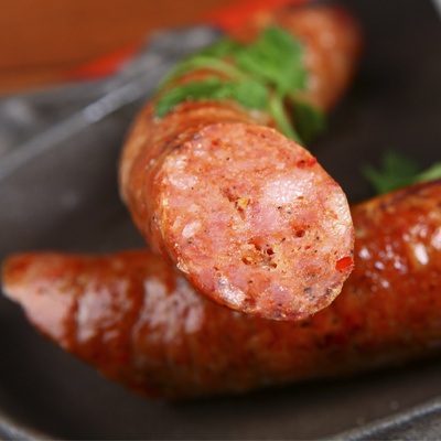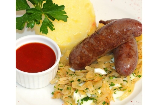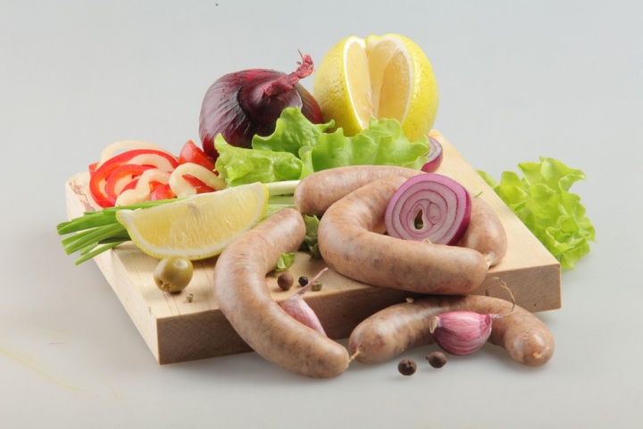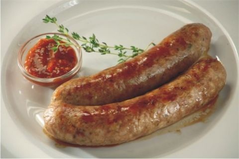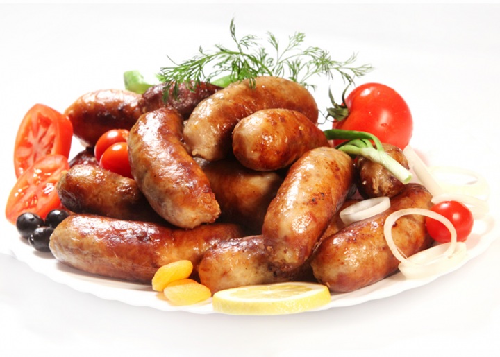 Сначала домашние колбаски готовят из свиного фарша, сдабривая душистыми специями и ядрёным луком, затем их отваривают и обжаривают с маслом.