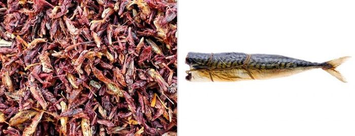 Мексиканские кузнечики chapulín (48 граммов белка на 100 граммов веса) vs скумбрия (28 граммов белка на 100 граммов веса)