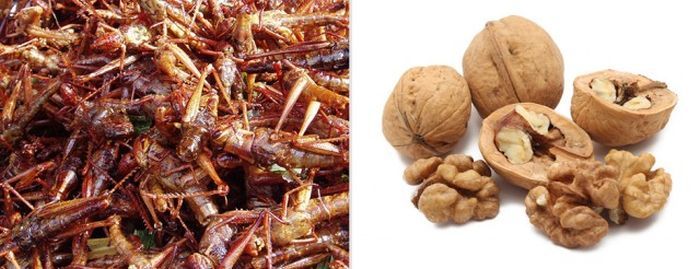 Кузнечики (46 граммов жиров Омега-6 на 100 граммов веса) vs грецкие орехи (28 граммов жиров Омега-6 на 100 граммов веса)