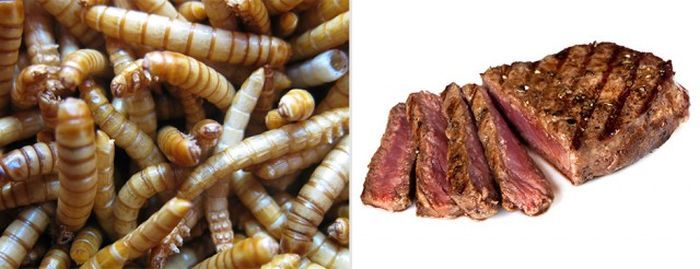 Мучные черви (90 граммов жиров Омега-6 на 100 граммов веса) vs говядина (10 граммов жиров Омега-6 на 100 граммов веса)