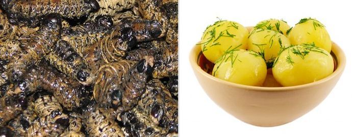 Гусеницы мопане (1000 миллиграммов калия на 100 граммов веса) vs картофель (630 миллиграммов калия на 100 граммов веса)