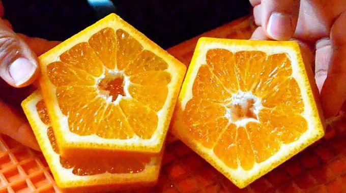 Эксперементы японских фермеров с формой овощей и фруктов уже хорошо известны по всему миру. Чего стоят хотя бы их знамениты арбузы в форме сердца. Однако на этом они не остановились и на днях представили своё очередное творение — пятиугольные апельсины. Первая партия необычных цитрусовых была роздана студентам, которые готовятся к вступительным экзаменам в качестве талисмана на удачу. После экзаменов их, конечно, можно будет съесть.
