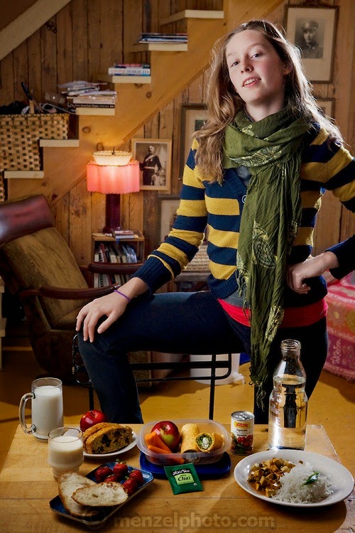 18. Коко Симон Финкен – вегетарианка из города Гатино, Квебек, Канада. Энергетическая ценность дневного рациона – 1900 ккал. Ей 16 лет. Рост – 1,76 м. Вес – 58 кг. В семье нет автомобиля, они покупают органическую еду, если она не слишком дорогая, а во дворе перед домом выращивают кое-какие овощи.