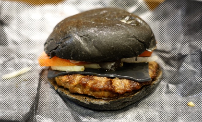 Япония. Кальмарбургер с чернилами каракатицы в Burger King.