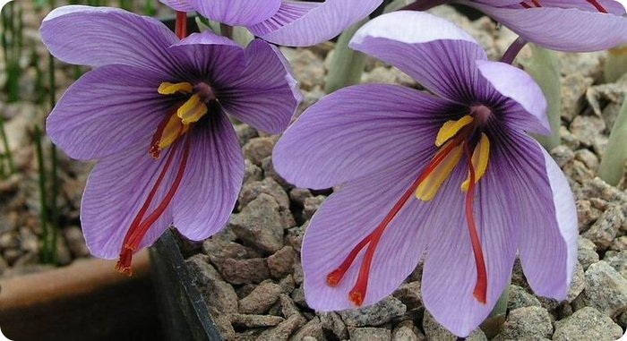 Самая дорогая пряность в мире — шафран. Настоящий шафран — не что иное, как тычинки растения семейства крокусовых (Crocus sativus). Есть еще и ложный шафран, который также называют имеретинским. Он изготавливается из тычинок цветков бархатцев. Цена килограмма настоящего шафрана может доходить до $6 тыс. Такая баснословная цена шафрана объясняется трудоемкостью его выращивания и технологии сбора. Для получения 1 кг сухого шафрана нужно перебрать примерно 2000 цветков. С 1 га плантации в первый год можно собрать лишь 6 кг шафрана; во второй год — до 20 кг. Заготовку проводят в период цветения в солнечную погоду. Ярко-оранжевые рыльца вырезают вручную в первый день раскрытия цветка и сушат.