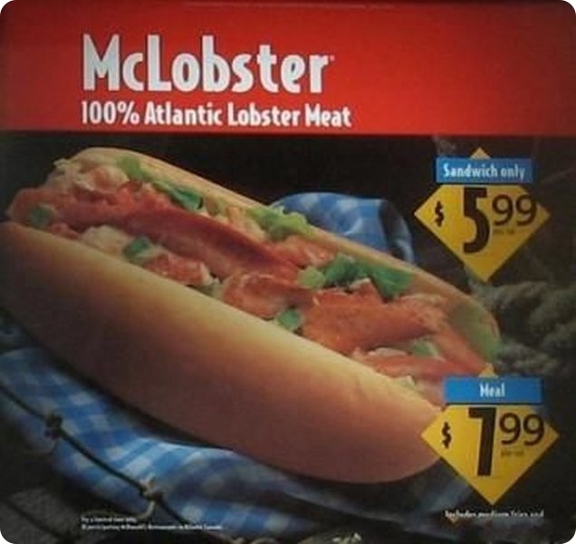 Например, некоторые рестораны McDonalds в Новой Англии и Канаде готовят блюдо под названием McLobster эдакий бутерброд с мясом канадского омара.