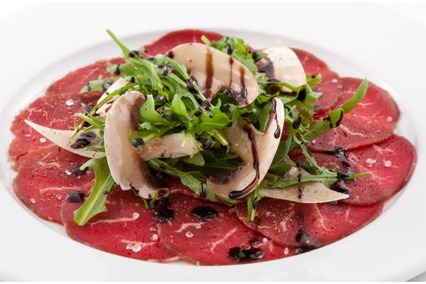 Блюдо из тонко нарезанных кусочков сырого мяса, приправленных оливковым маслом с уксусом и/или лимонным соком. Традиционно подается как холодное блюдо или закуска. Карпаччо может быть и рыбным, но мы-то в данном посте говорим о Его Величестве Мясе.