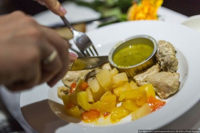 В эконом-классе еда примерно одинаковая во всех авиакомпаниях, это рыба и курица. В бизнес-классе есть где разгуляться желудку.