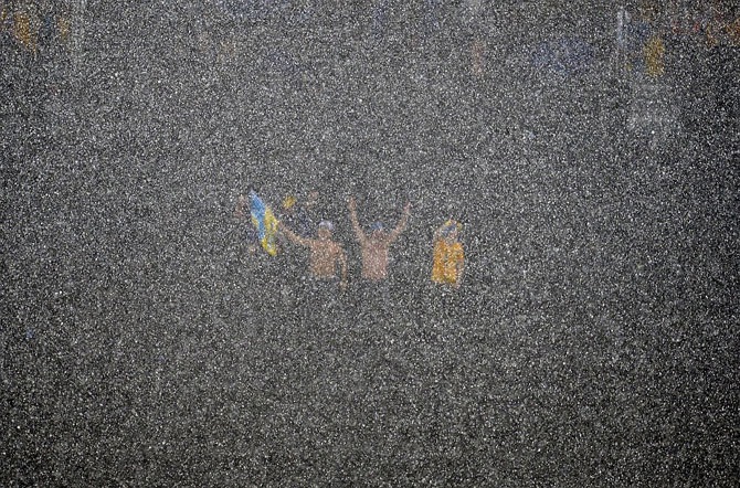 Матч в группе D на Евро-2012 между Украиной и Францией был прерван из-за проливного дождя и грозы. Донецк, Украина, 15 июня 2012. Украина проиграла Франции 0:2.