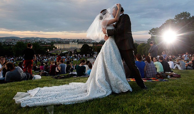 Каждый год в Вене проходит концерт Венского филармонического оркестра. Он проходит летом под открытым небом, и его посещают около 100 000 человек. Одна пара решила в этот день сыграть свадьбу, 7 июня 2012.
