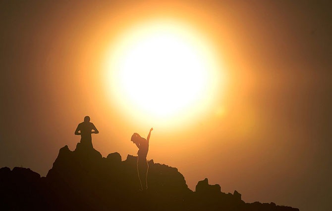 В этот день тысячи любителей йоги собрались в Нью-Йорке на Таймс-Сквер, 20 июня 2012 года. Температура была почти 37 градусов Цельсия.