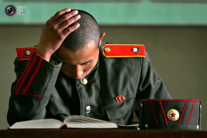 Северокорейский солдат читает книгу в библиотеке «Grand People’s Study House» в Пхеньяне.