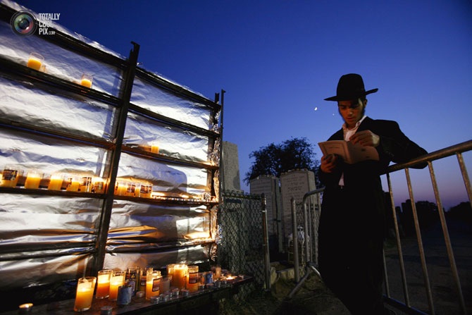 Мужчина читает молитвенник возле могилы Любавического ребе Менахема Мендла Шнеерсона в Нью-Йорке.