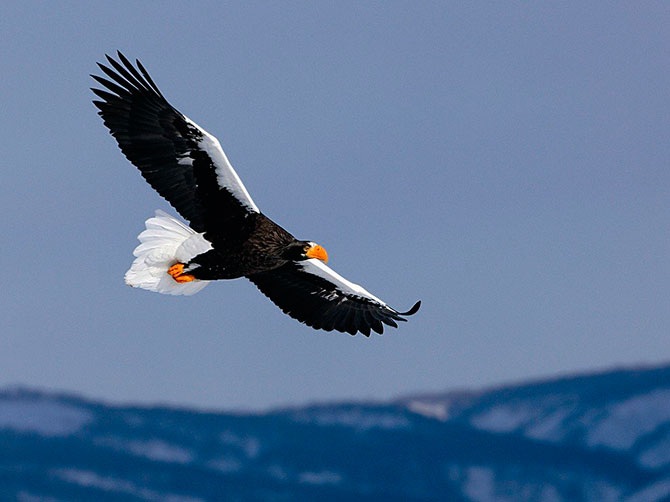 Белоплечий орлан над Камчаткой. Это самый крупный пернатый хищник северного полушария.