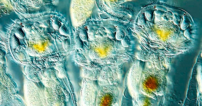 Победителем конкурса «Olympus BioScapes Imaging Competition 2012» стала колониальная коловратка, запечатленная австралийцем Ральфом Гриммом (Ralph Grimm).