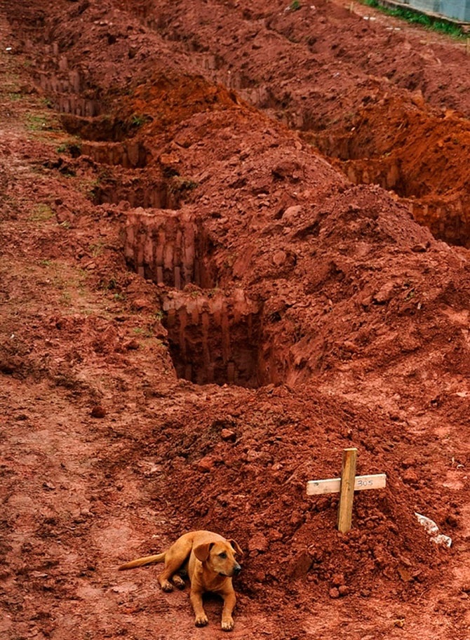 Собака по имени «Leao» сидящая в течение двух дней у могилы хозяина, который погиб в жутких оползнях.