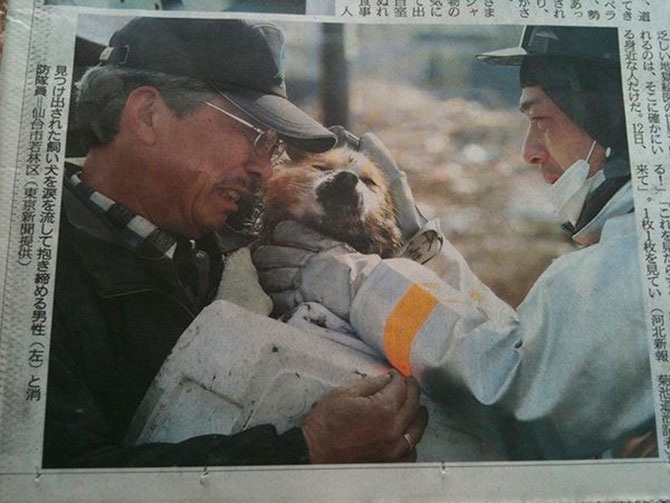 Собака встретилась со своим хозяином после цунами в Японии. 2011 год.