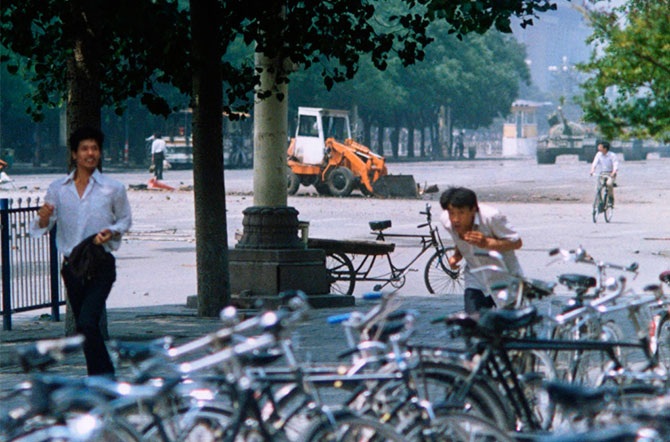 Культовая фотография неизвестного мятежника, который стоял перед колонной китайских танков. Тяньаньмэнь, 1989 год.